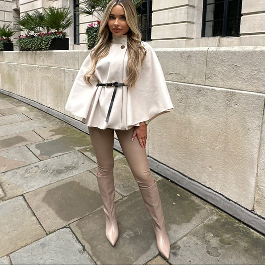 Caroline High Neck Cape Jacket with Belt